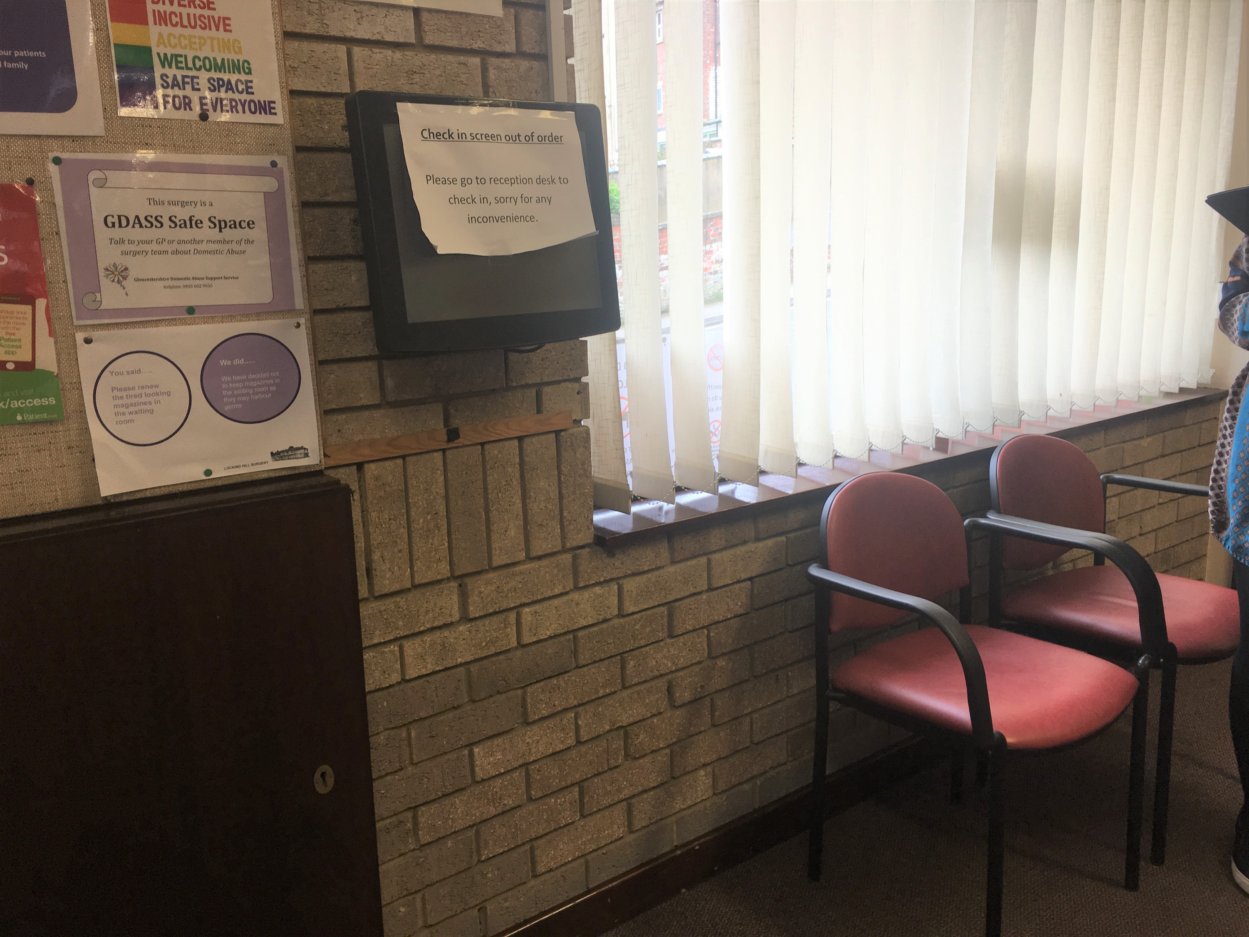 There is a self-check-in monitor immediately to your left when entering the building which was out of order on my visit, however it is too high for wheelchair users or people of smaller stature.